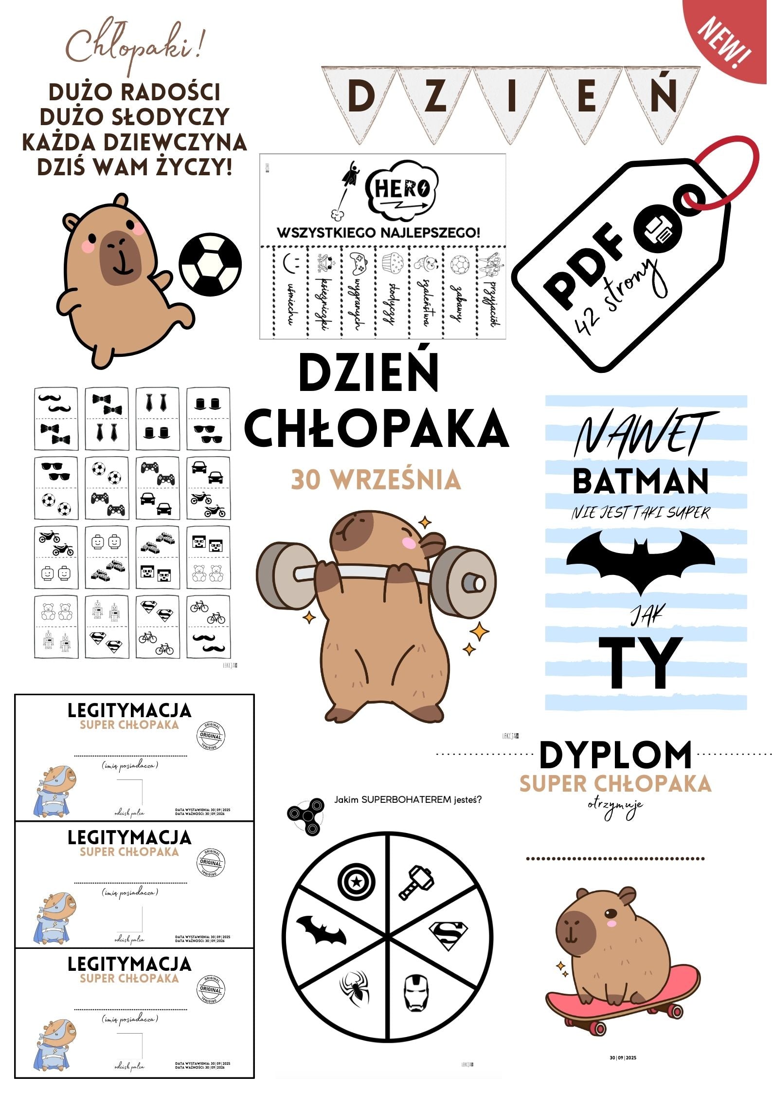 Zestaw DZIEŃ CHŁOPAKA PDF a4 zawiera: